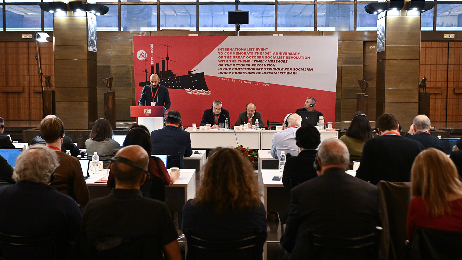 Internationalistische Veranstaltung der KKE zum 108. Jahrestag der Oktoberrevolution