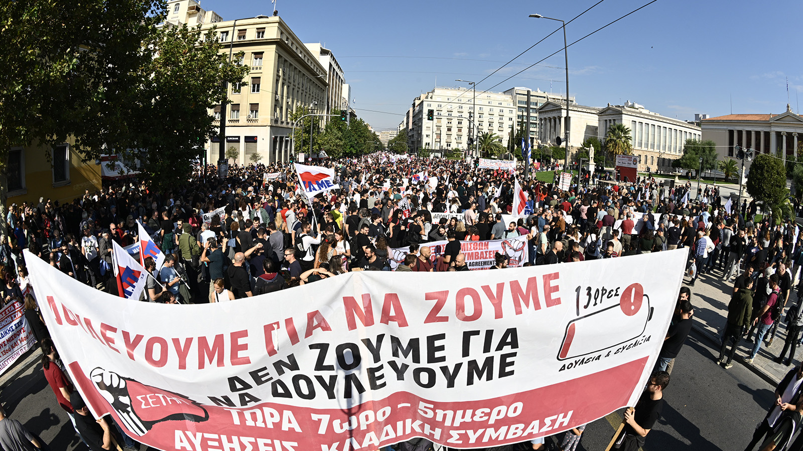 On 14 October 2025, the day that parliament debated on the anti-labour bill providing for 13-hour workdays, a new 24-hour general strike took place in Greece, for the second time in 15 days.